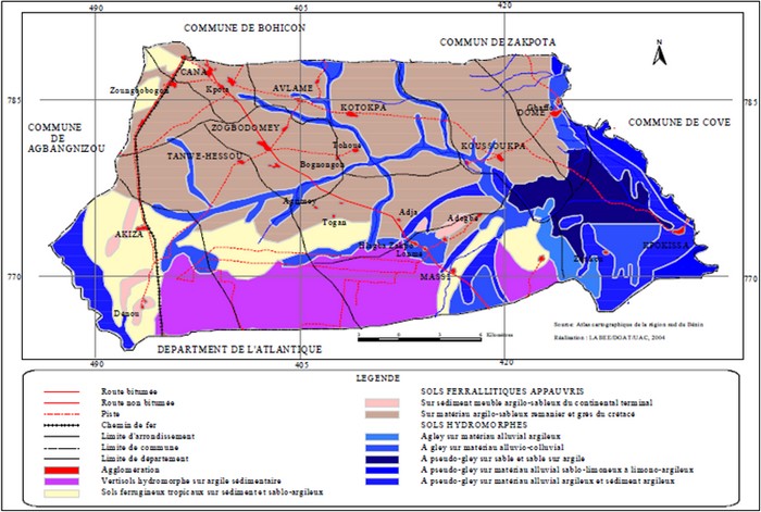 | Ferrallitic soils | Aïhouédji | Cana I and II, Zogbodomey, Zoukou, Kpokissa | 28% | Suitable for all cultures |