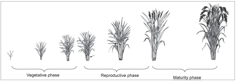 Growth phase and rice development stages