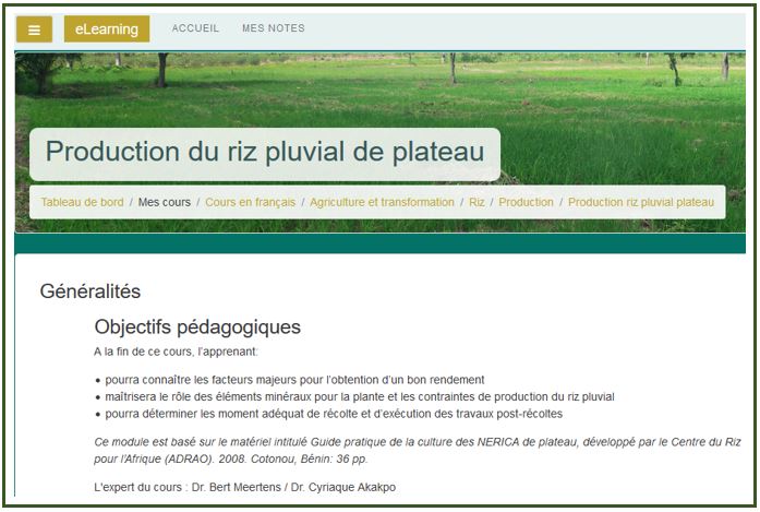 E-learning course - Production of rain-fed upland rice