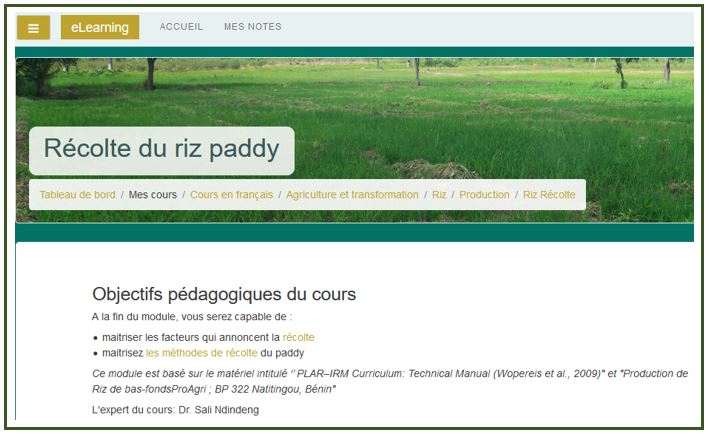 E-learning course - Harvest fo rice
