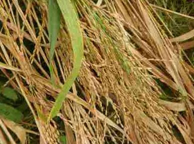 Présence de plants de riz sauvage (Glaberrima) en mélange avec la variété désirée du paysan.