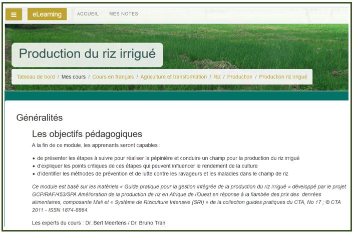 Cours e-learning - La production du riz irrigué